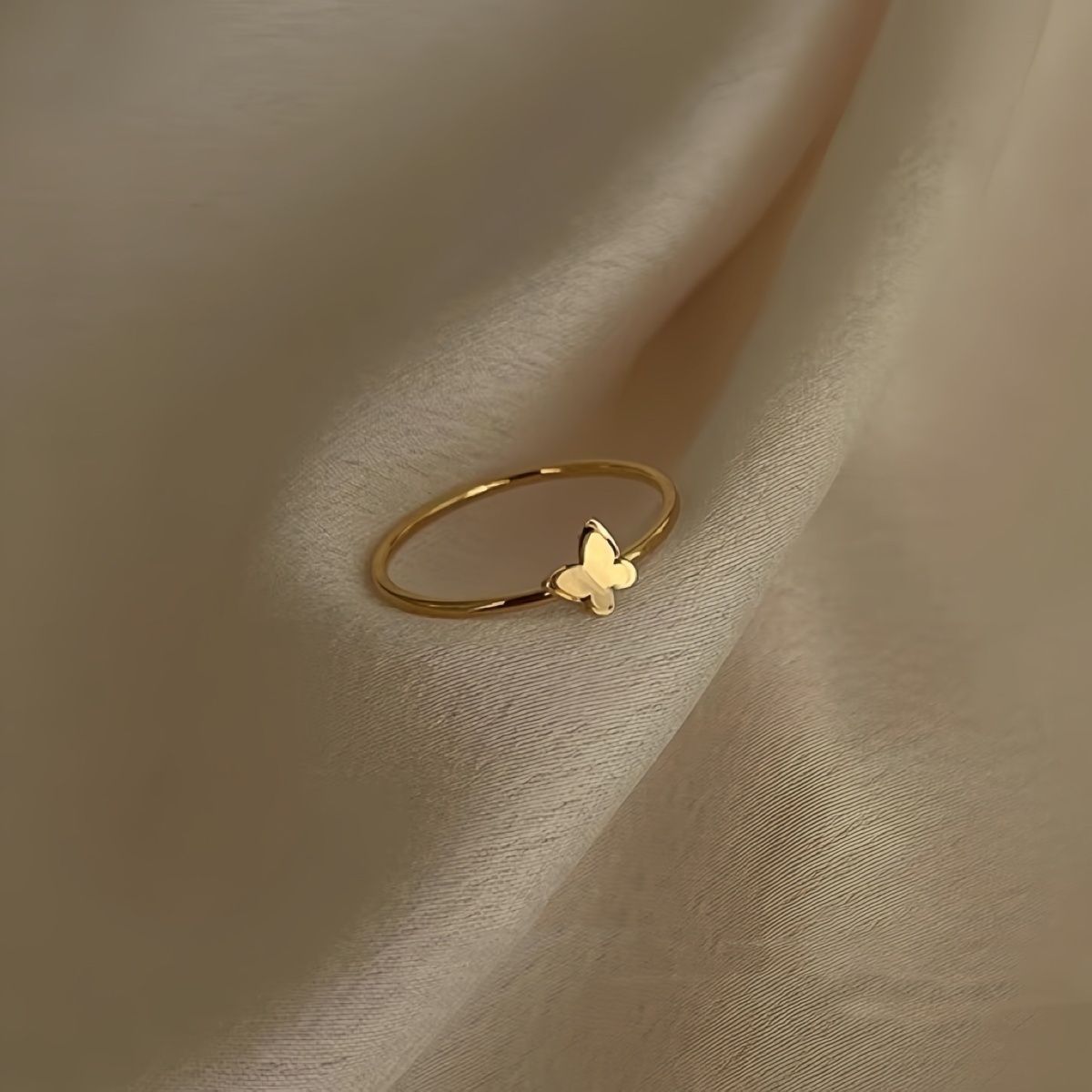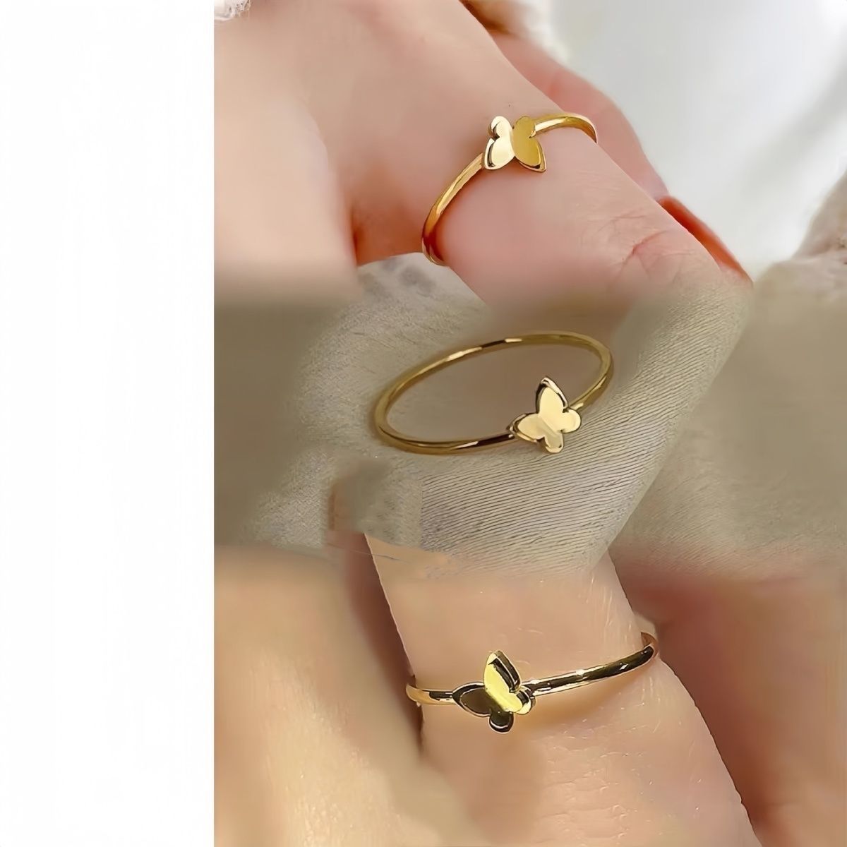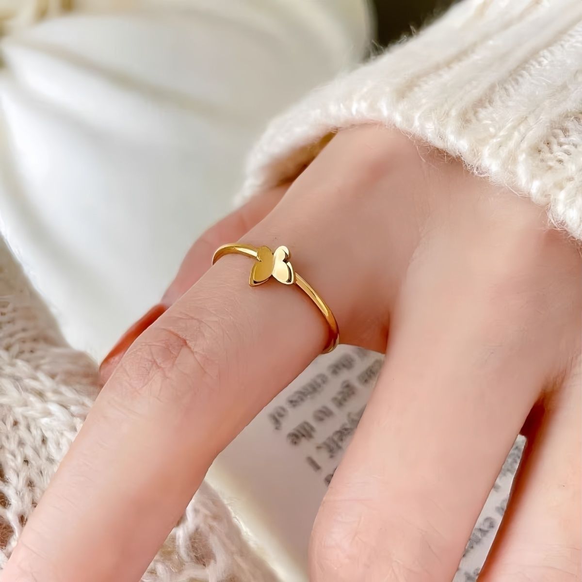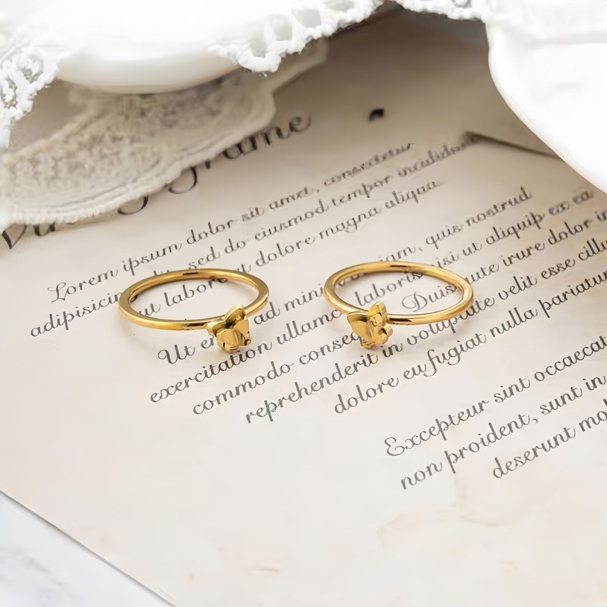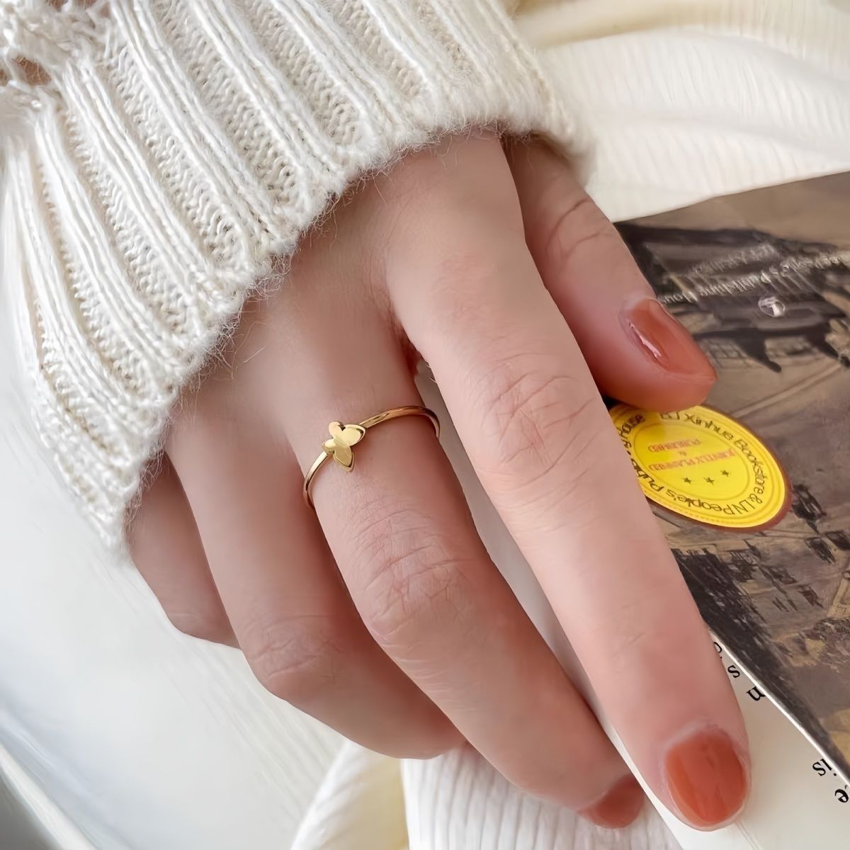「チタンスチール 色落ちしない ダブルレイヤー ミニバタフライ 関節リング 可愛い 小物寂しい」